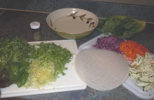 Thinly sliced/grated zucchini, carrots, and cabbage
